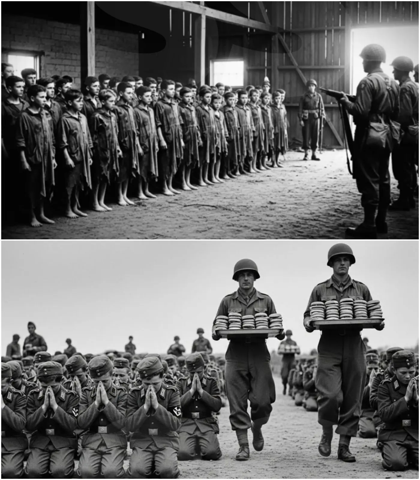 Mangiarono con gusto, piangendo e ridendo allo stesso tempo, mentre i soldati americani accarezzavano loro delicatamente la testa.